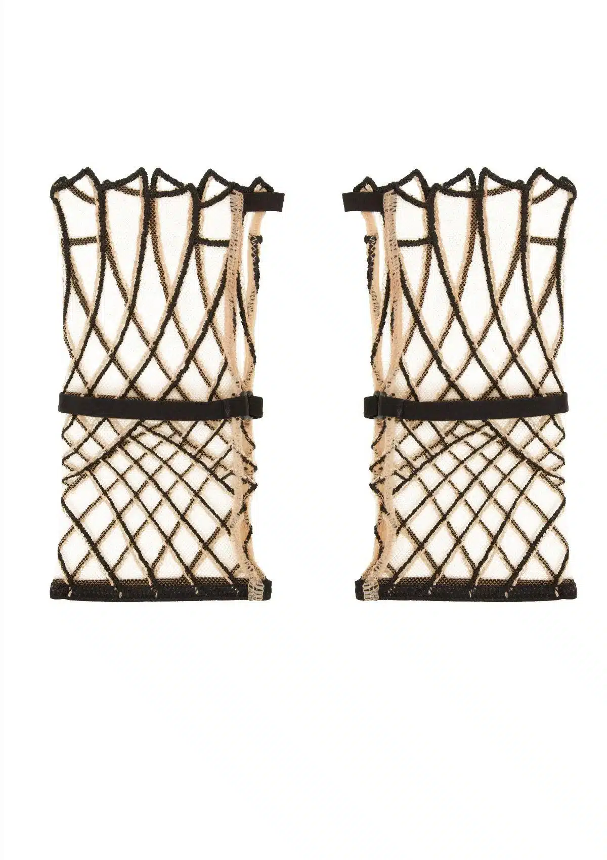 Dankzij de verstelbare elastische band bij de pols sluiten de handschoenen perfect aan en blijven ze comfortabel zitten. De open vingers en verfijnde afwerking zorgen voor een sensuele, couture-achtige uitstraling zonder in te leveren op draagcomfort.