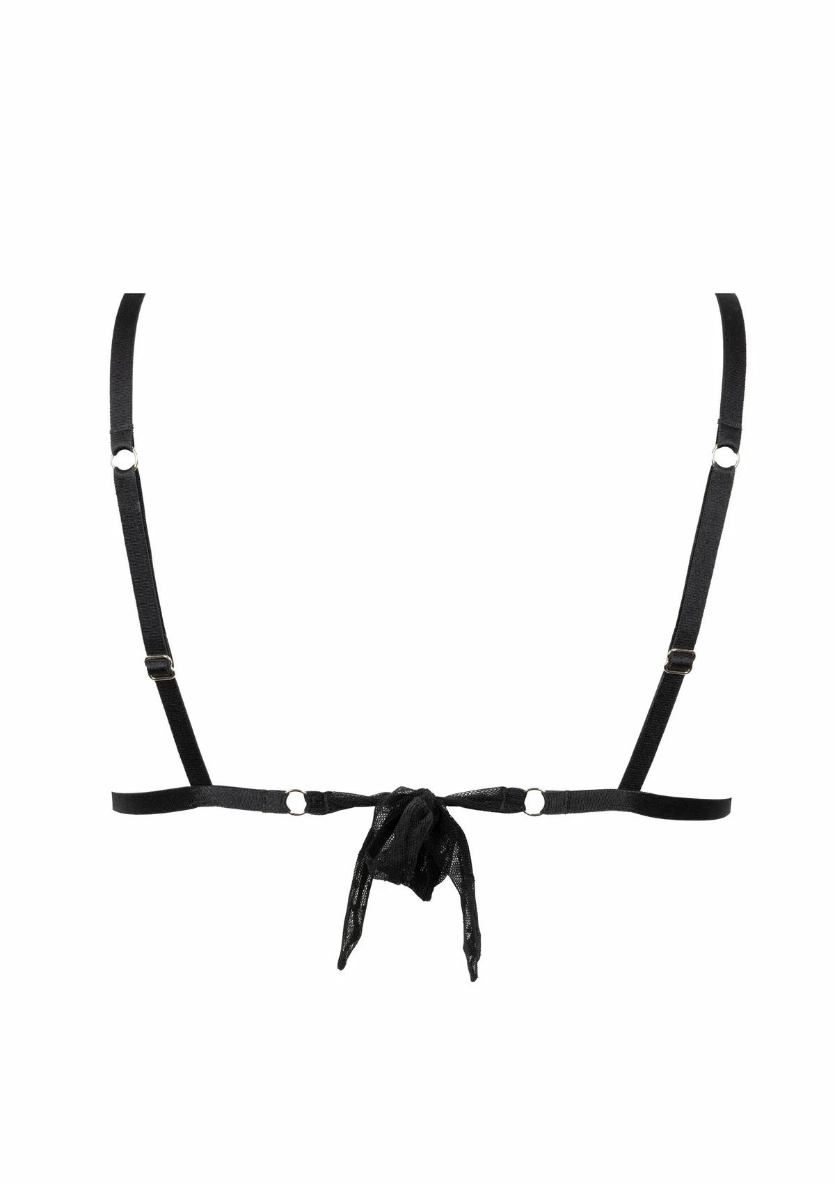 Het ontwerp is volledig zonder beugels en biedt lichte, natuurlijke ondersteuning — ideaal voor comfortabel dragen met een sensuele uitstraling. De bralette wordt op de rug gestrikt, waardoor je de pasvorm eenvoudig aanpast en het ontwerp een nonchalante, vrouwelijke touch krijgt.