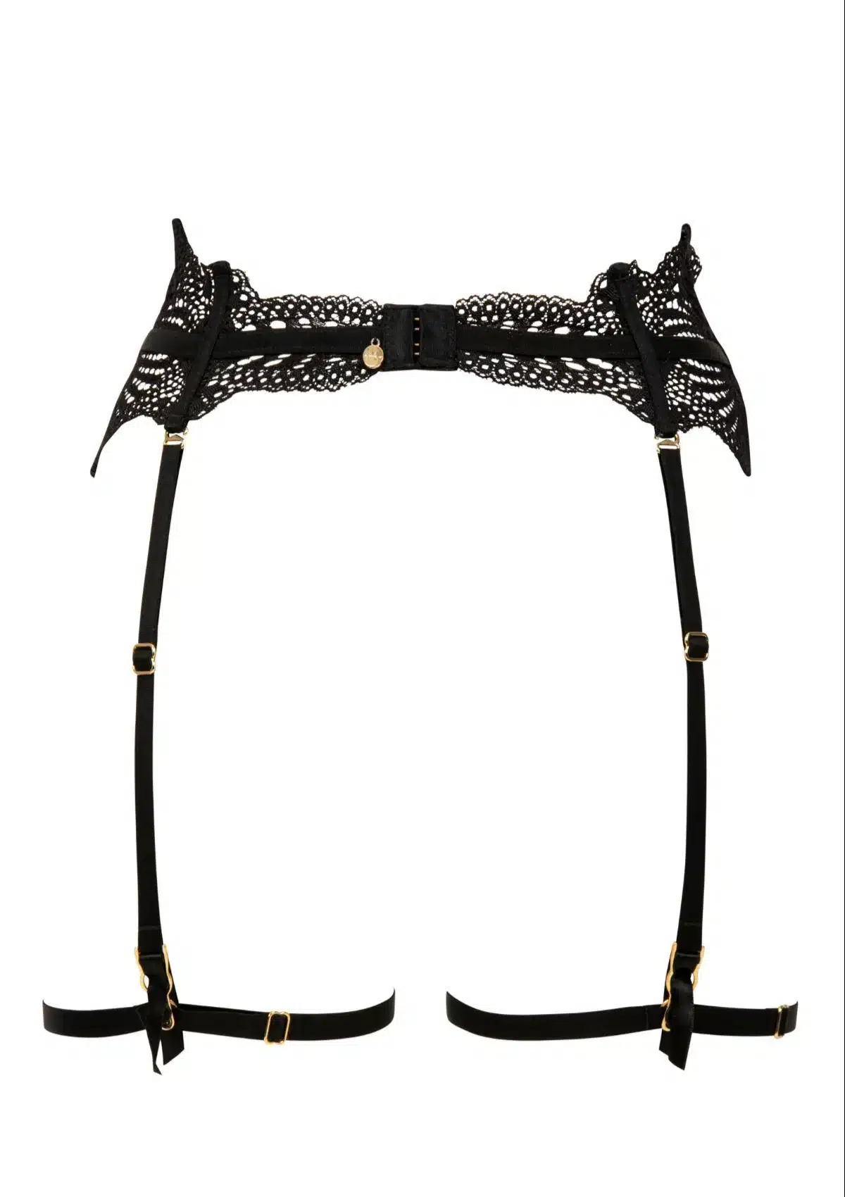 Een fijn spaghetti-koord met goudkleurige uiteinden loopt door sierlijke juweellusjes, wat zorgt voor een subtiele glans en een verfijnde afwerking. Dankzij de afneembare jarretelles kan dit item moeiteloos worden getransformeerd tot een stijlvolle tailleband, waardoor je eindeloos kunt variëren in styling.