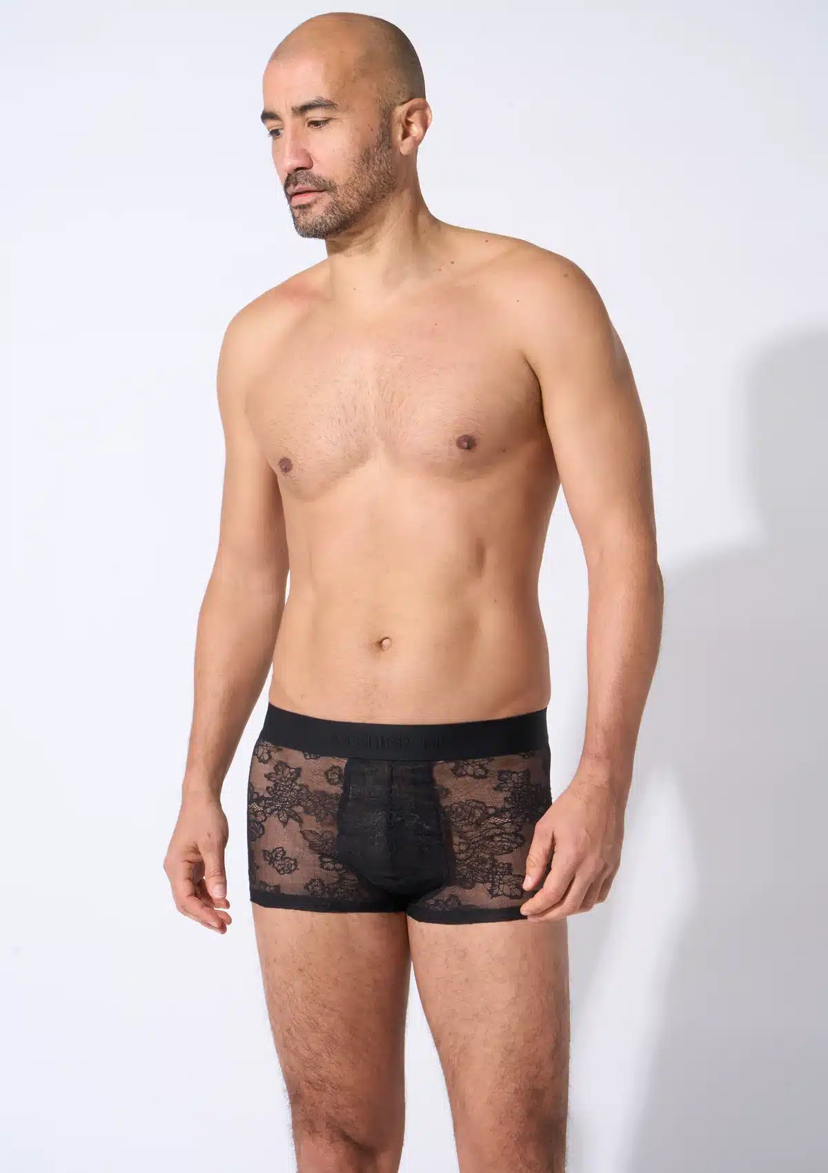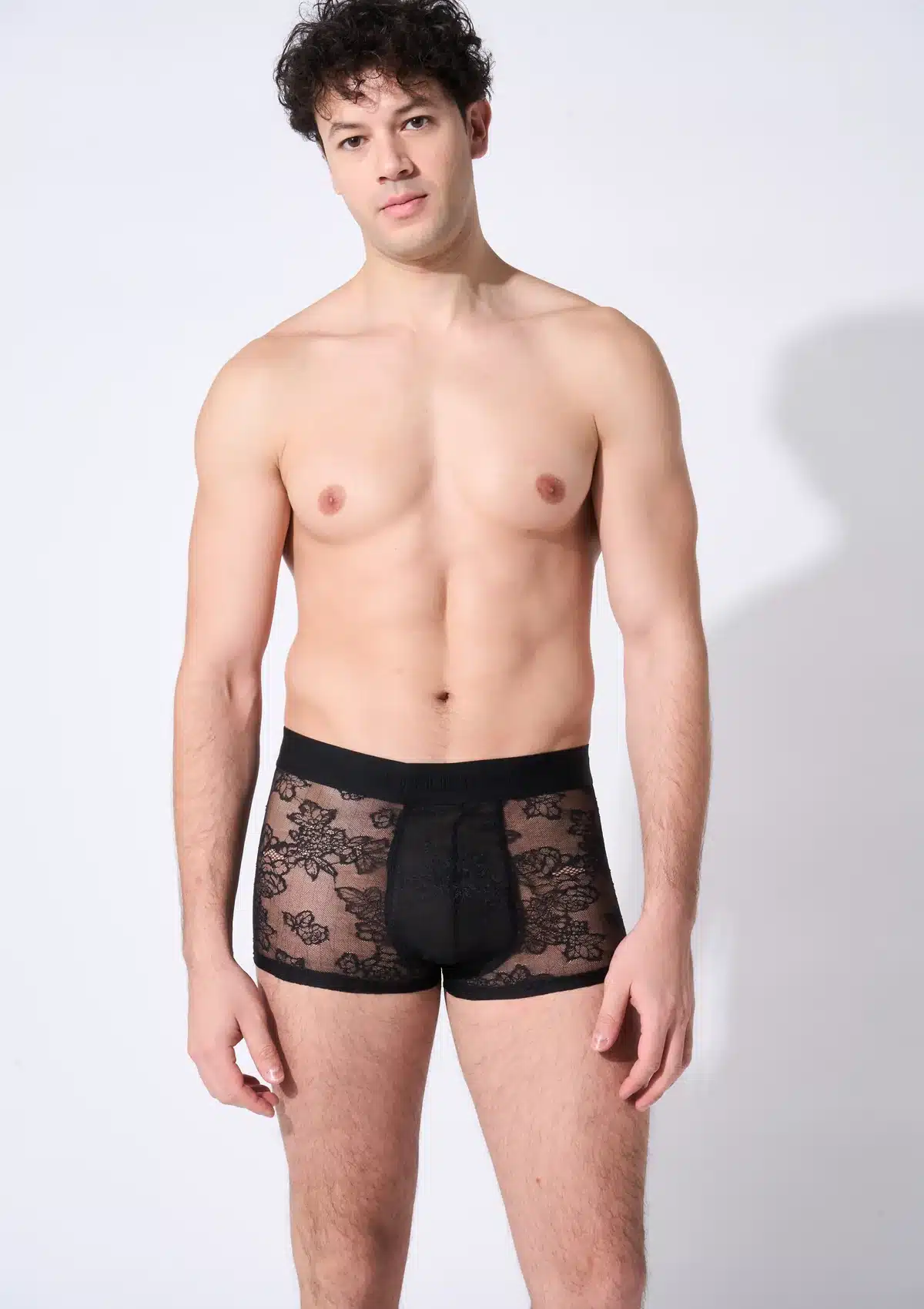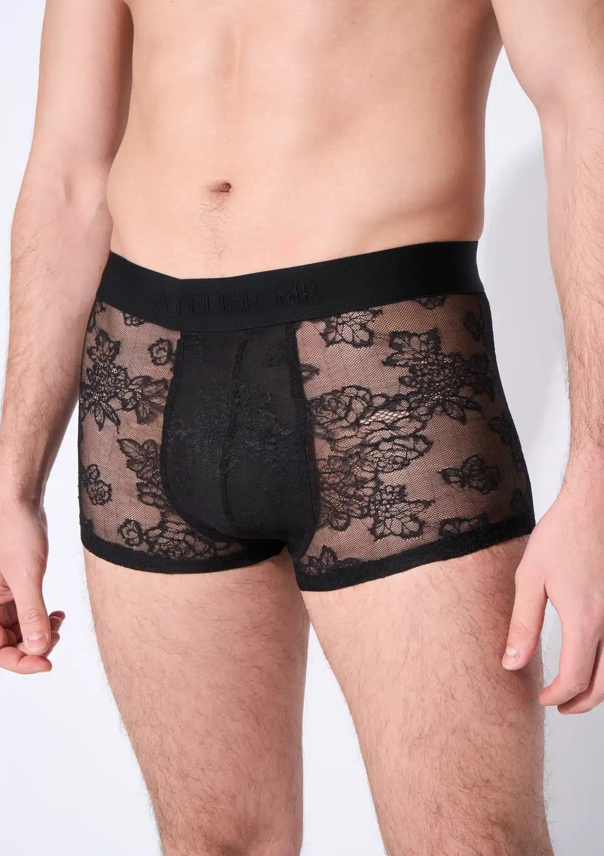 De Lace Boxer van Atelier Monsieur combineert luxe materialen met een moderne uitstraling. De transparante kant en comfortabele pasvorm maken dit een gedurfd maar elegant stuk herenlingerie.