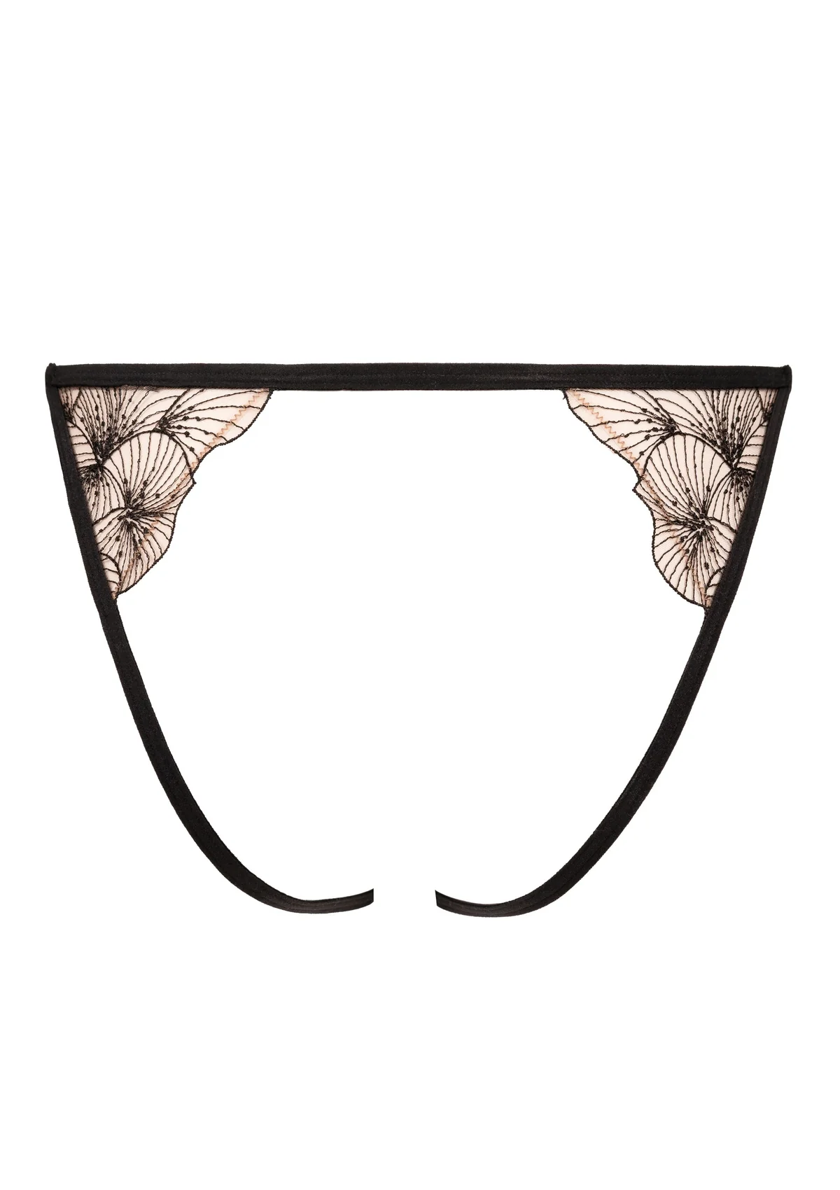 De open achterkant geeft deze slip een gedurfde en verleidelijke uitstraling, terwijl de zachte materialen zorgen voor een comfortabel draaggevoel. Het samenspel van transparantie en broderie maakt dit een perfect item voor een luxe en sensuele lingerie set.