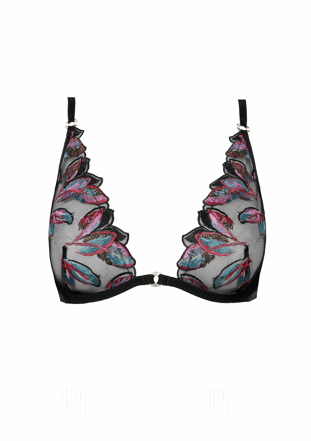 De Oiseau de Paradis Beugel Bralette is ontworpen voor een verleidelijk diep decolleté, dankzij de subtiele demi-lune beugels die de borst ondersteunen en mooi centreren. De geborduurde cups geven het ontwerp een luxe en vrouwelijke uitstraling.