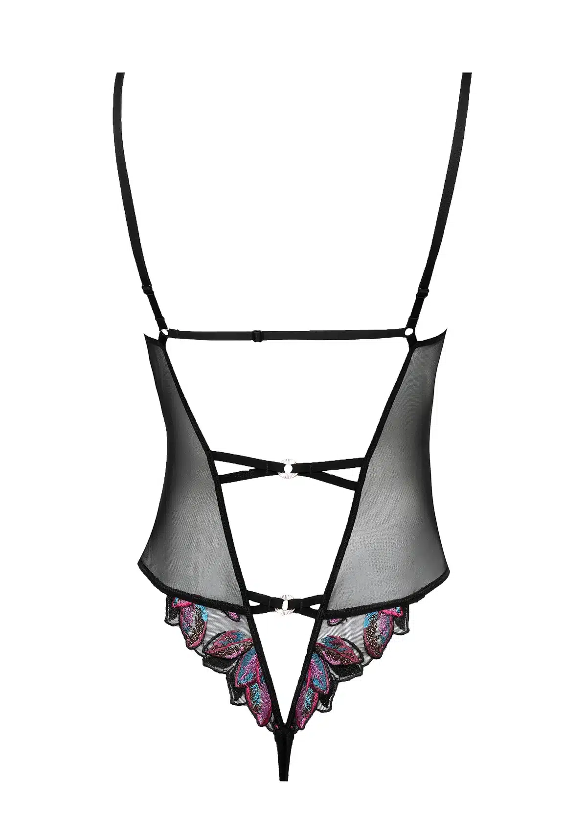 De achterkant is uitgevoerd in een stringmodel met een hoog uitgesneden belijning, waardoor de vormen elegant worden benadrukt. Het katoenen kruisje zorgt voor extra draagcomfort, waardoor deze body niet alleen verleidelijk is, maar ook prettig om te dragen.