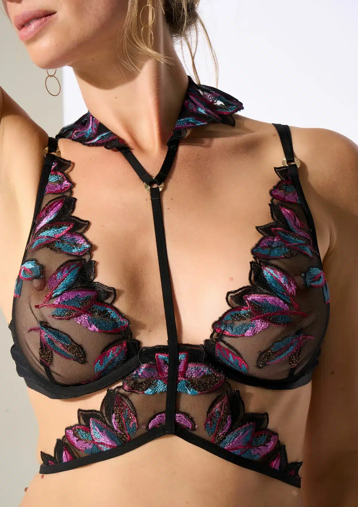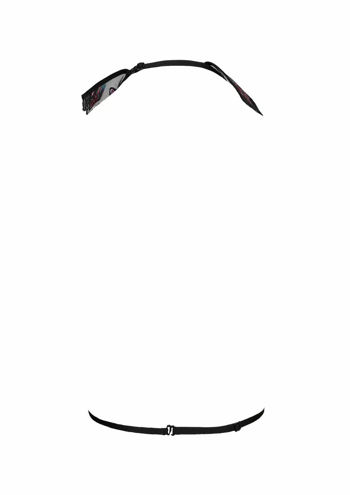 De volledig verstelbare banden maken het harnas flexibel en geschikt voor verschillende pasvormen. Het kan solo gedragen worden voor een gedurfde look, of gecombineerd worden met de bh, string en jarretelgordel uit de Oiseau de Paradis-collectie.